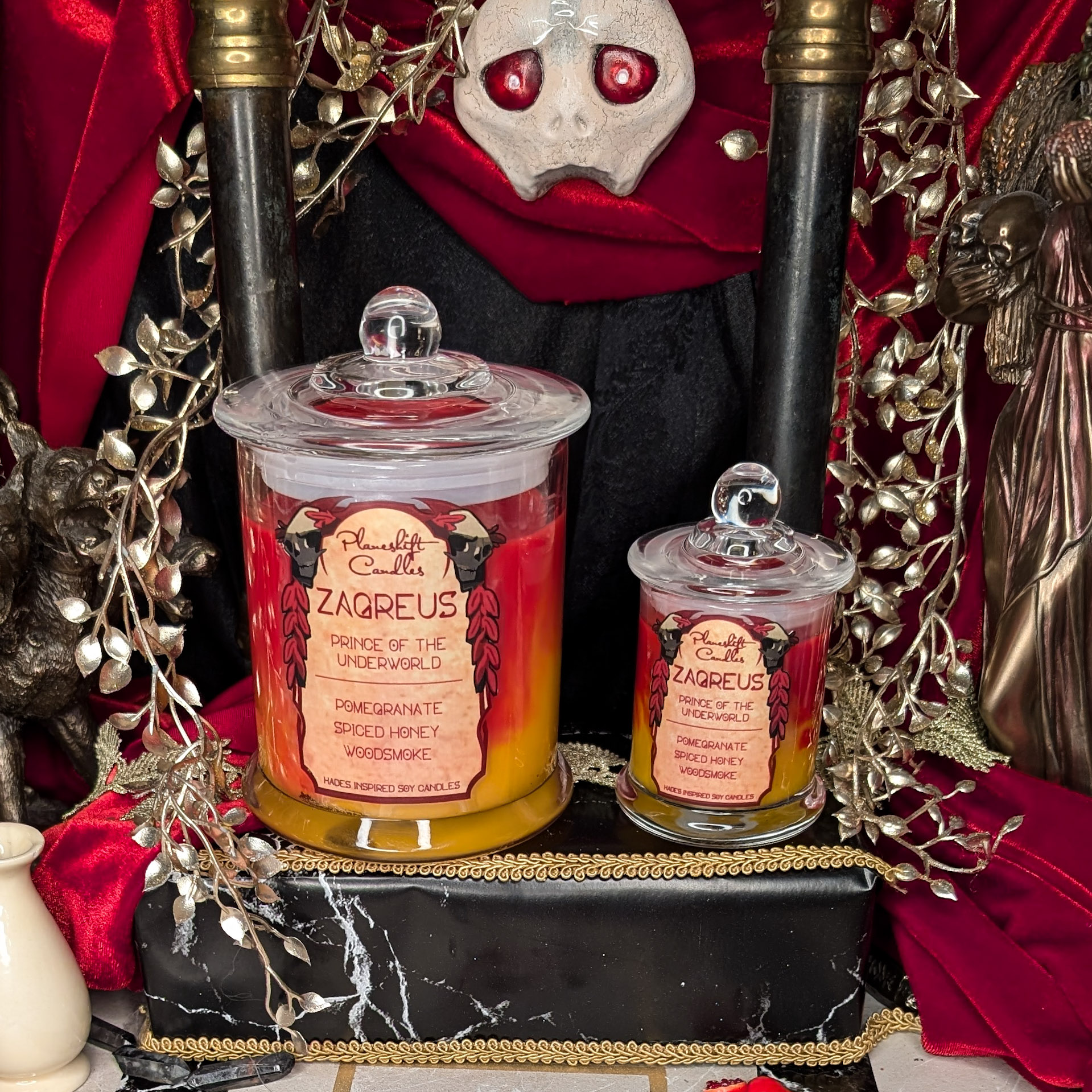 Inspired by elements of his myth and ancestry, a smoky-sweet blend of fruit, spices and heat. Pomegranates for his mother and woodsmoke for his father form the core of the blend, mixed with sage for the calm of Night. His own fire comes out through a hot spice blend, all mellowed by a sweet honey tone for bottled nectar.