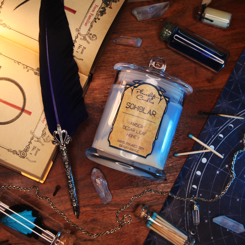 A complex, balanced fragrance that needs unravelling as much as the scholar's work, reminiscent of incense, parchment and aromatic oils.